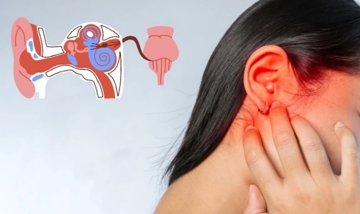 Having symptoms like a headache, facial muscle weakness, swelling around the ear or dizziness, along with ear pain.