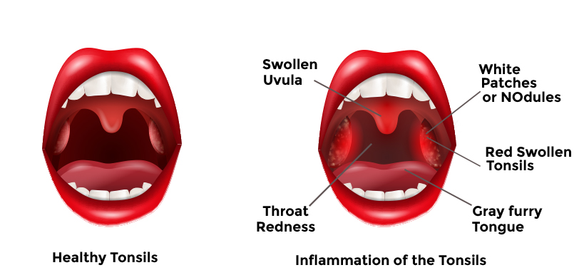 The infection and inflammation of the tonsils are known as Tonsillitis. Tonsils are the two small soft lumps of tissues- one on each side of the back of the throat. You can observe these tonsils in a mirror by opening your mouth and sticking out the tongue.